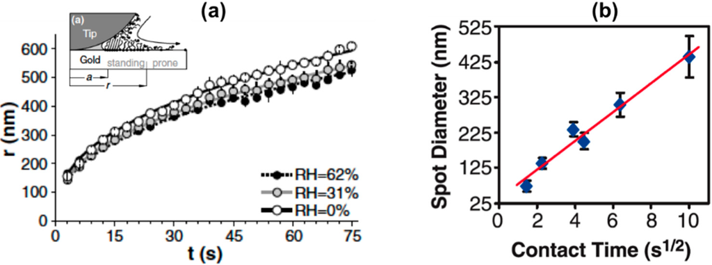 - Sirghi, L. Transport mechanisms in capillary condensation of water at a single-asperity nanoscopic contact. Langmuir 2012, 28, 2558–2566. [Google Scholar] [CrossRef] [PubMed]