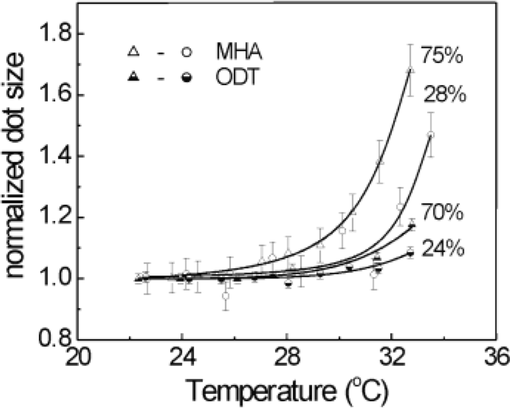 - Chung, S.; Felts, J.R.; Wang, D.; King, W.P.; De Yoreo, J.J. Temperature-dependence of ink transport during thermal dip-pen nanolithography. Appl. Phys. Lett. 2011, 99, 193101. [Google Scholar] [CrossRef]
