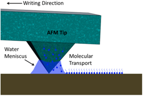 | (a) Dip Pen Nanolithography (DPN) [20] | ![]() | AFM tip is dip-coated with the ink which is then transferred via water meniscus formed between tip and substrate. |