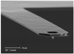 | (c) Bioplume (Bioforce Nanosciences) [29] | ![]() | The cantilever has an open fluidic channel and liquid transfer is achieved by direct contact of the tip and surface. Piezoresistive sensor is integrated to control theplacement. |