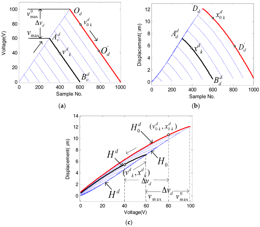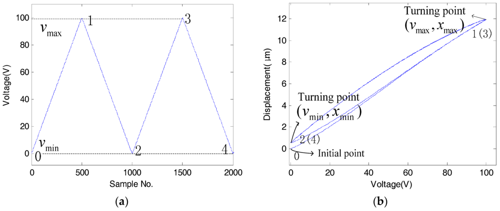 The voltage sequence {} and the corresponding displacement sequence {} can constitute the reference hysteresis curve