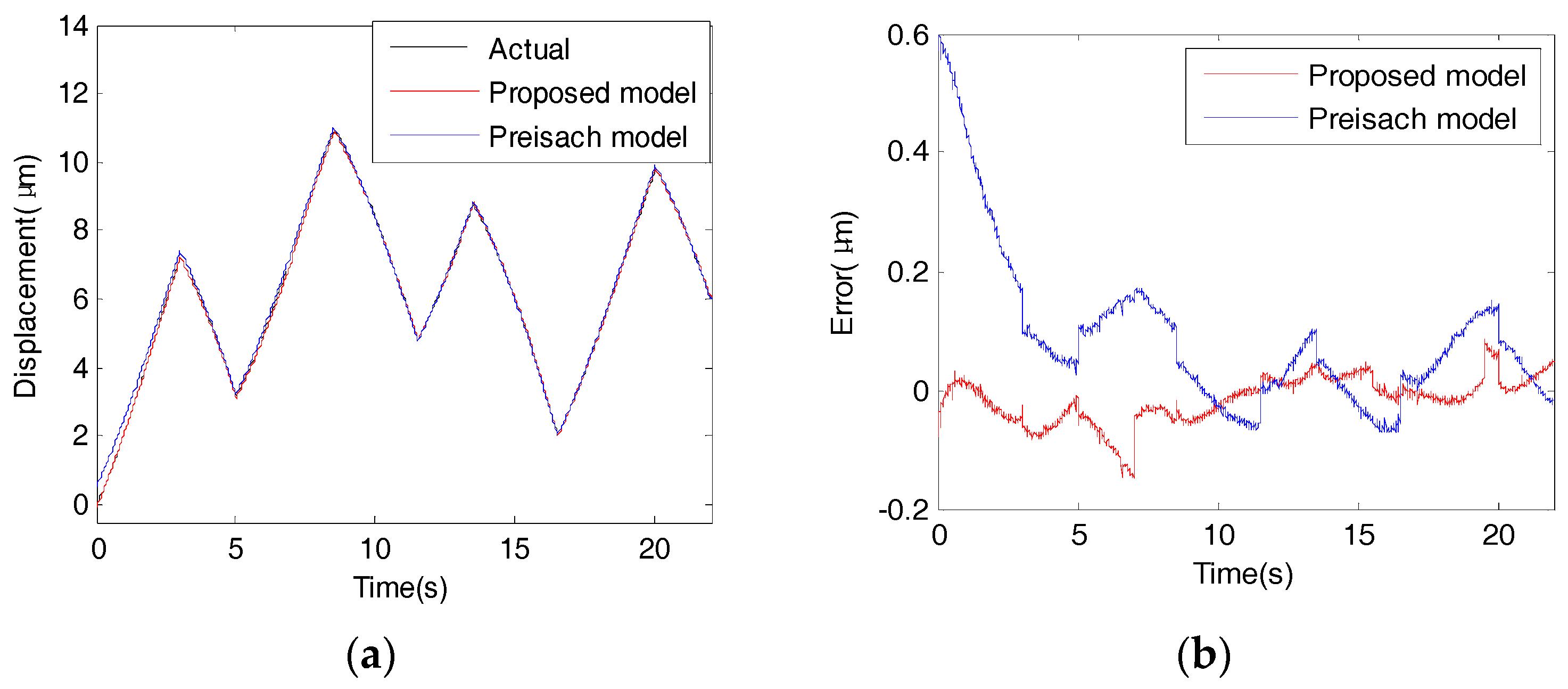 - Ge, P.; Jouaneh, M. Tracking control of a piezoceramic actuator. IEEE Trans. Control Syst. Technol. 1996, 4, 209–216. [Google Scholar] [CrossRef]
