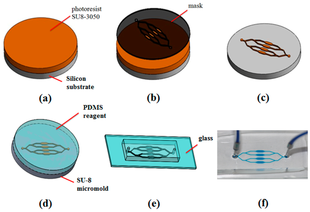 - McDonald, J.C.; Duffy, D.C.; Anderson, J.R.; Chiu, D.T.; Wu, H.K.; Schueller, O.J.A.; Whitesides, G.M. Fabrication of microfluidic systems in poly(dimethylsiloxane). Electrophoresis 2000, 21, 27–40. [Google Scholar] [CrossRef]