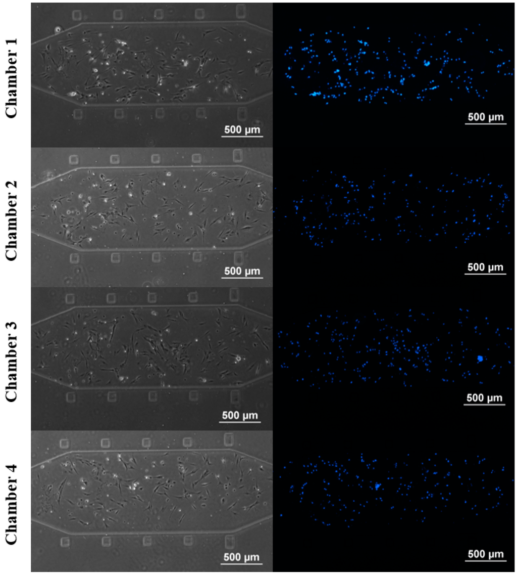 3.1. rBMSCs Culture and Stability in the Four Parallel Microfluidic Chambers
