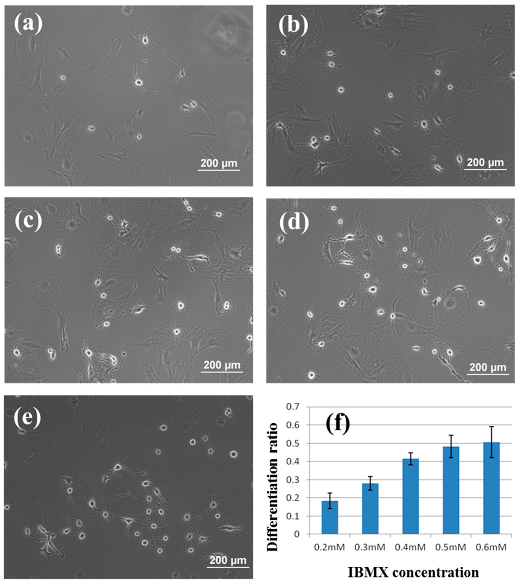 3.2. Induction of rBMSCs Differentiation into Neuronal Cells by IBMX Stimulation