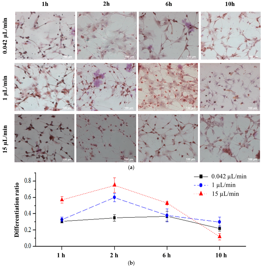 - Cheng, Y.-C.; Tsao, C.-W.; Chiang, M.-Z.; Chung, C.-A.; Chien, C.-C.; Hu, W.-W.; Ruaan, R.-C.; Li, C. Microfluidic platform for human placenta-derived multipotent stem cells culture and applied for enhanced neuronal differentiation. Microfluid. Nanofluid. 2015, 18, 587–598. [Google Scholar] [CrossRef]