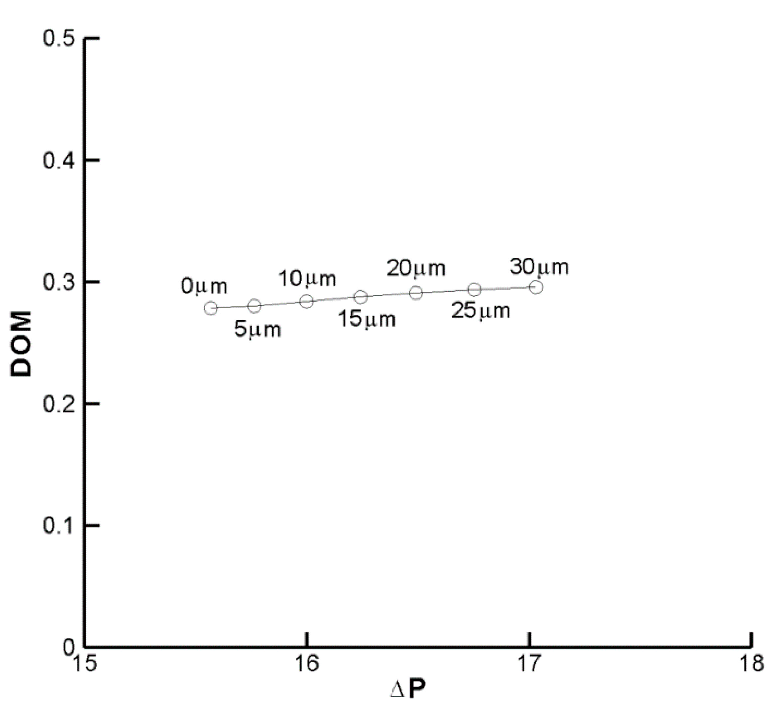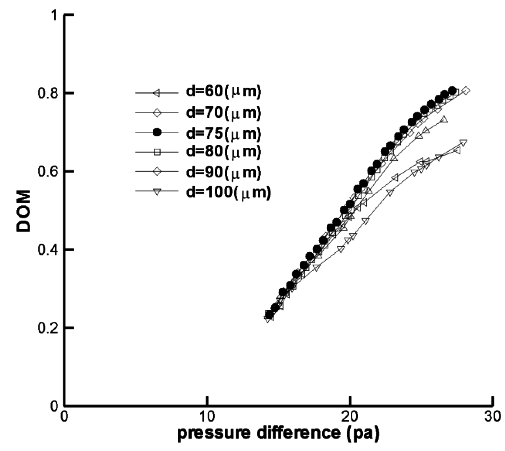 Effects of the clearance on the DOM relationship with pressure difference.