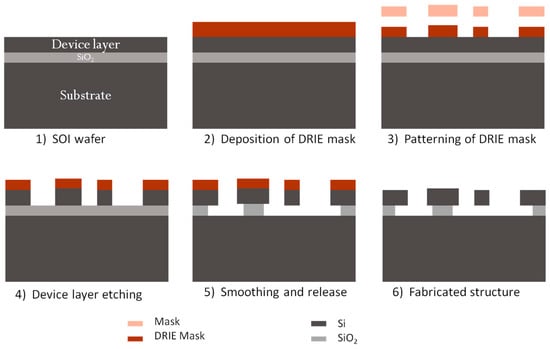 - Jeong, K.-H.; Lee, L.P. A novel microfabrication of a self-aligned vertical comb drive on a single SOI wafer for optical MEMS applications. J. Micromech. Microeng. 2005, 15, 277–281. [Google Scholar] [CrossRef]