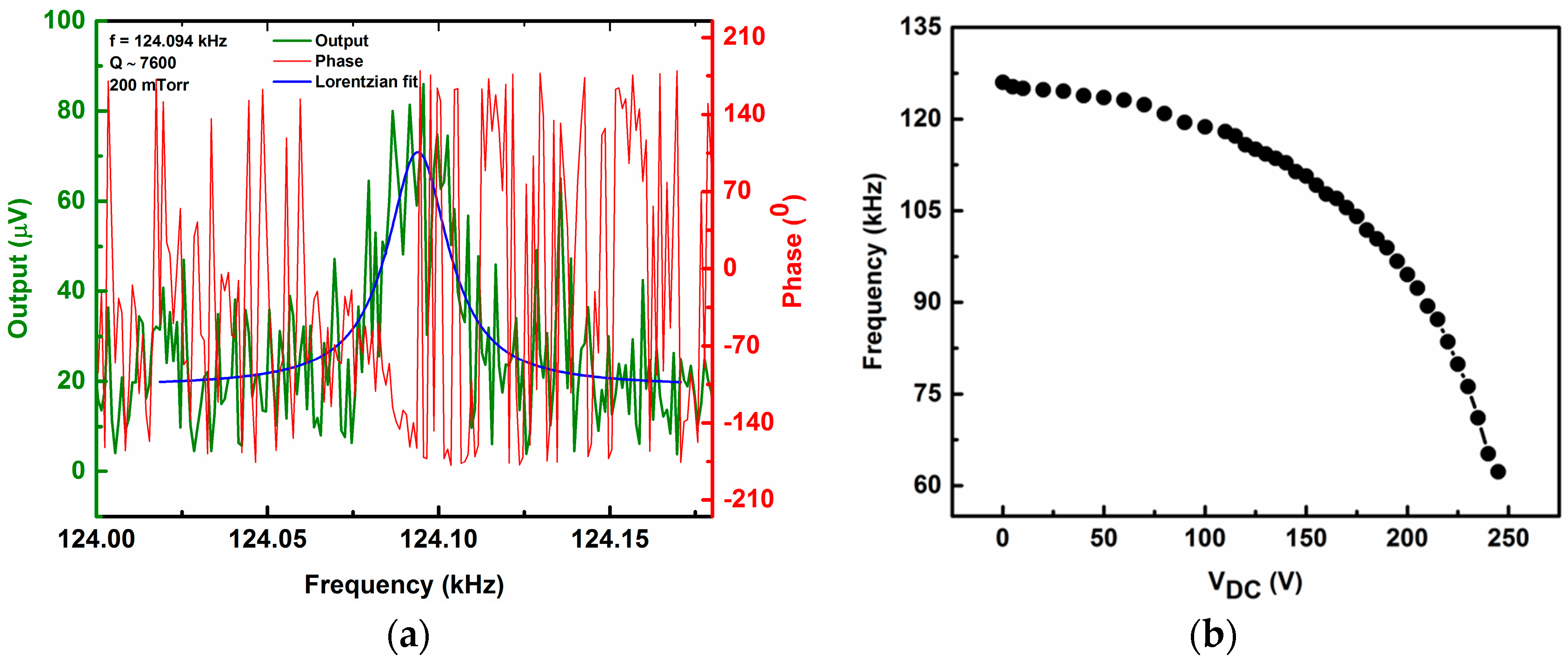 - Shao, L.C.; Palaniapan, M.; Tan, W.W.; Khine, L. Nonlinearity in micromechanical free-free beam resonators: Modeling and experimental verification. J. Micromech. Microeng. 2008, 18, 025017. [Google Scholar] [CrossRef]