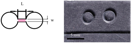 A mold consisting of the two microchambers and the inter-connecting microchannel was patterned on a silicon wafer using standard MEMS techniques. A polydimethylsiloxane (PDMS) structure was then produced using a simple replication method. The PDMS structure was bonded to a blank glass substrate by an oxygen plasma treatment process in order to form the final RED chip. Nafion solution purchased from DuPont (DE-2021, Wilmington, DE, USA) was diluted with deionized (DI) water in a proportion of 5:1, then injected into one reservoir and allowed to fill the microchannel and the other reservoir under the effects of capillary forces (see Figure 1). The chip was then stored at room temperature for 8 h; causing the Nafion to solidify within the microchannel and reservoirs [22,23]. The solidified Nafion in the two reservoirs can be easily peeled off. The Nafion remaining in the microchannel acts as a cation-selective membrane and results in the generation of electrical power through a reverse electrodialysis (RED) process.