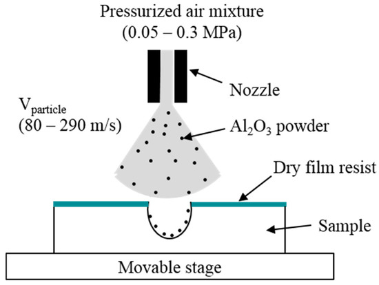 Sandblasting is a technique in which a particle jet is directed towards a target (sample) for material removal by mechanical erosion via the impingement of high velocity abrasive particles. The sandblast process can be used for etching various materials such as glass [13], ceramics [2] (example: LTCC (low temperature co-fired ceramics)), and silicon.