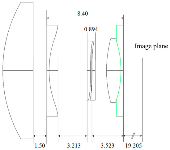 22]. To compensate for aberration effects and fulfill the requirements of the demonstrator’s specifications, the description of the AH surfaces is expanded and is represented by a polynomial of fourth order (Equation (2)). The parameters used are depicted in