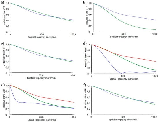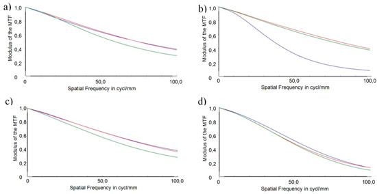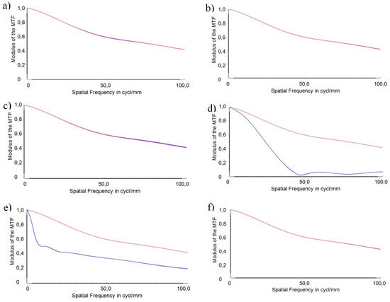 Figure 14a–c), the reference MTF coincides with the MTF resulting from the original design (see also