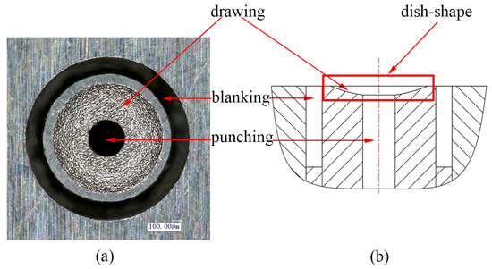 - Fu, M.W.; Yang, B. Experimental and simulation studies of micro blanking and deep drawing compound process using copper sheet. J. Mater. Process. Technol. 2013, 213, 101–110. [Google Scholar] [CrossRef]