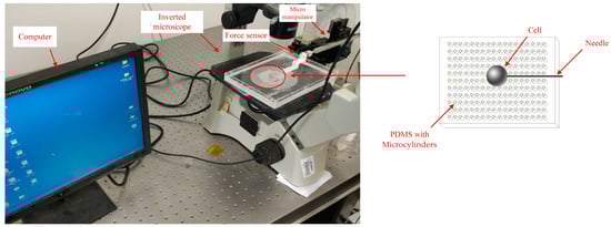 Microinjection allows the administration of a foreign target gene directly into the nucleus of a fertilized egg using a glass needle under a microscope to integrate the foreign gene into the recipient cell genome. This is a common biological procedure, used in in vitro fertilization and transgenic technology [1]. Historically, the traditional technique involved transferring cells with a microsuction tube under a microscope and microinjecting with a needle smaller than 10 μm in diameter [2]. However, this required specific skills and time and effort. Recently, Sun and Dong’s groups reported successful automation of this technique [3,4,5,6]. Specifically, a motor drives the needle to completely inject the cell, and the cell injection force or microscope vision serves as feedback. Robot-assisted microinjection is an emerging area of research that is capable of improving efficiency, particularly in precision and high-throughput aspects.