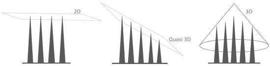 Schematic of the 2D, quasi 3D, and 3D MEAs.