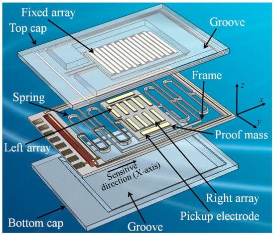 8. Chae, J.; Kulah, H.; Najafi, K. An in-plane high-sensitivity, low-noise micro-g silicon accelerometer with CMOS readout circuitry. J. Microelectromech. Syst. 2004, 13, 628–635. [Google Scholar] [CrossRef]