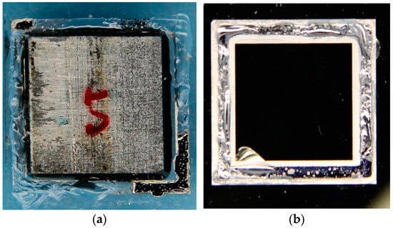Figure 17. Photographs of fracture interface of a sample after tensile test. (a) Glass side; (b) silicon side.