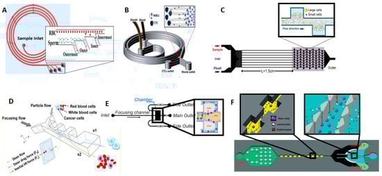 - Guan, G.; Wu, L.; Bhagat, A.A.; Li, Z.; Chen, P.C.Y.; Chao, S.; Ong, C.J.; Han, J. Spiral microchannel with rectangular and trapezoidal cross-sections for size based particle separation. Sci. Rep. 2013, 3, 1475. [Google Scholar] [CrossRef] [PubMed]