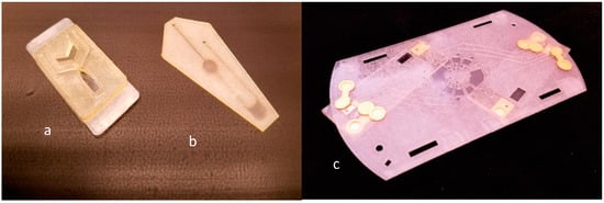 - Thompson, B.L.; Ouyang, Y.; Duarte, G.R.M.; Carrilho, E.; Krauss, S.T.; Landers, J.P. Inexpensive, rapid protoyping of microfluidic devices using overhead transparencies and laser print, cut and laminate fabrication method. Nat. Protoc. 2015, 10, 875–886. [Google Scholar] [CrossRef] [PubMed]