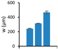 Lastly, we determined the fidelity of the technique under repeated use. Generally, the number of fabrication cycles during prototyping is three [46]. In order to demonstrate that glass moulds can exceed the durability required for prototyping purposes, 11 embossing cycles were undertaken on PC, for three designs (from Figure 4), each with different dimensions. After each embossing cycle, the feature height (h), width (w) and root mean surface roughness (Rq), were measured, from optical profilometry results. Table 4 shows the summarized results for the embossed substrates after cycles one, five and eleven. These are compared to the same parameters in the glass imprint template. Reproducibility was good for smaller features, but became less certain for larger structures. While optimization is required, we note that lower tolerances may be acceptable for larger features.