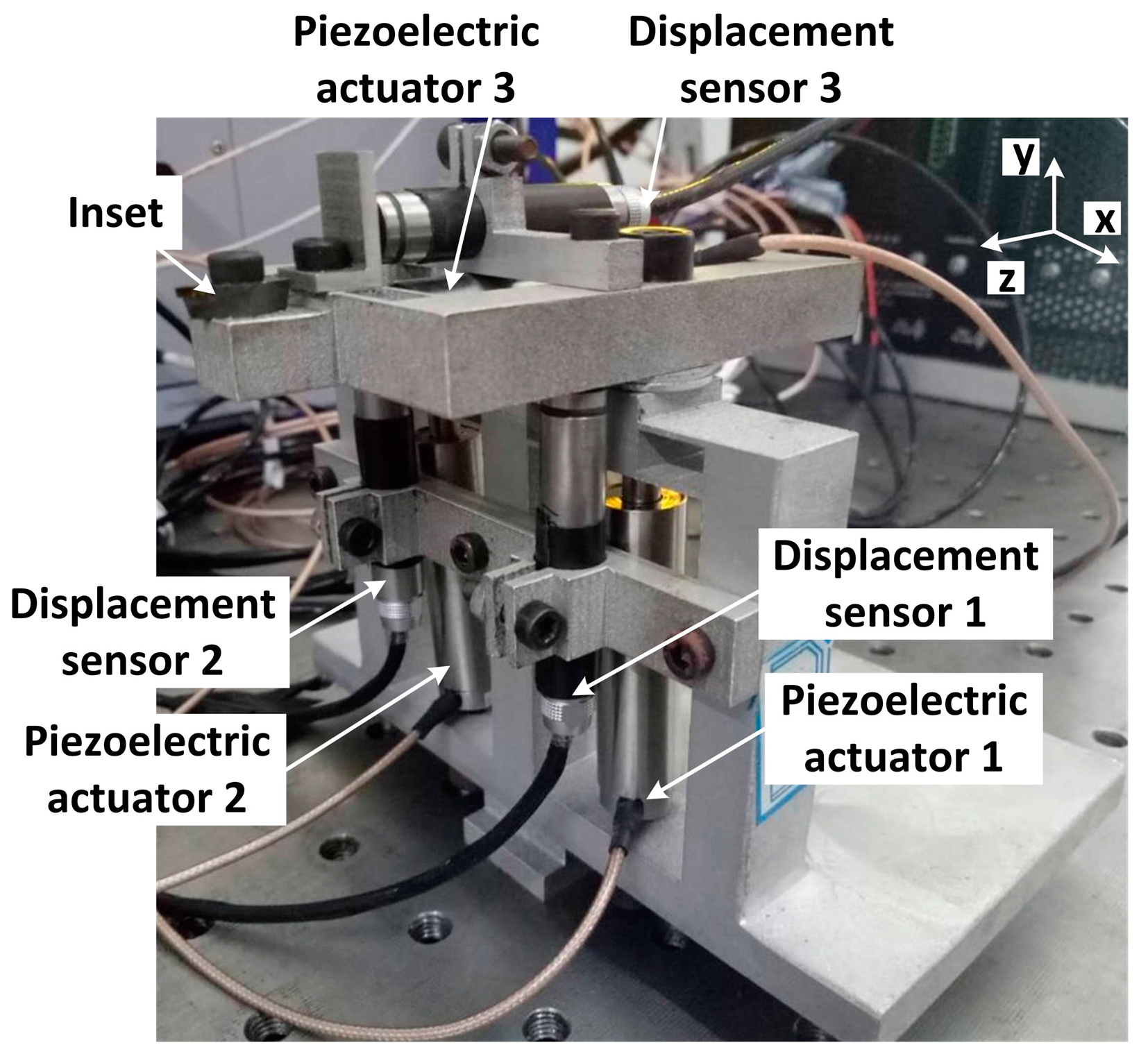 | z’, y1’, y2’ | The real displacement of three piezoelectric stacks (μm) |