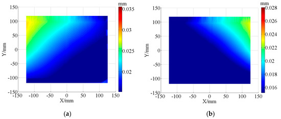 Error distribution by contacted scanning method. (a) Error distribution of concave surface 1; (b) Error distribution of convex surface 1.