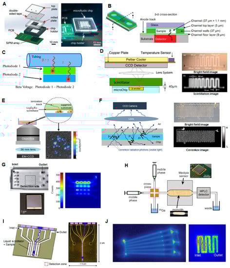 - Cho, J.S.; Vu, N.T.; Chung, Y.H.; Yu, Z.T.; Silverman, R.W.; Taschereau, R.; Tseng, H.R.; Chatziioannou, A.F. Detection of Beta Particles in a Microfluidic Chip Using a Scintillator and CCD. In Proceedings of the 2006 IEEE Nuclear Science Symposium Conference Record, San Diego, CA, USA, 29 October–1 November 2006; Volume 4, pp. 1977–1981. [Google Scholar]
