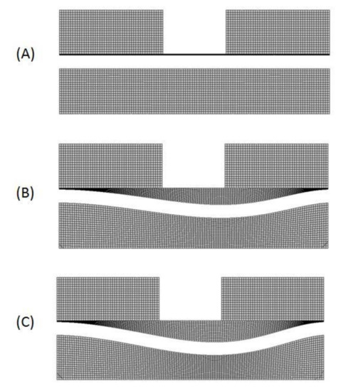In order to study a coupled field analysis of the fluid flow and structural deformation in microfluidic devices, a fluid-structure interaction was performed using commercial ANSYS software (version 16.2, ANSYS, Inc., Canonsburg, PA, USA) [