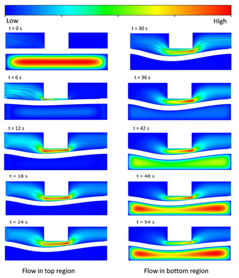 11]. In that analysis, to avoid external devices (i.e., the pneumatic system, cylinder, and pumps) in controlling membrane fluctuation in the microvalve, two similar NC microvalves were connected in a distinctive manner. This achieved a fluctuating fluid flow and pressure distribution in the interior regions of the microvalve to control the deflection of the structural membrane (shown in