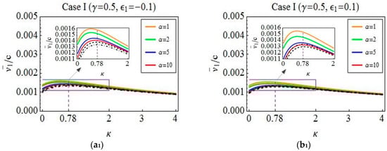 When . The relation for in case I and the same one for in case II are denoted by the blue line in Figure 4. It reveals that the distance between two waves is inversely proportional to the ratio of body length to wave width such that the maximum average velocity increases as the distance between two waves decreases along this line. In addition, the other relation for in case I is also in this situation, which is denoted by the purple line in Figure 4. At this time, the optimal distance between two waves is zero when the maximum average velocity is achieved.