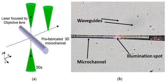 - Osellame, R.; Hoekstra, H.J.; Cerullo, G.; Pollnau, M. Femtosecond laser microstructuring: An enabling tool for optofluidic lab-on-chips. Laser Photonics Rev. 2011, 5, 442–463. [Google Scholar] [CrossRef]