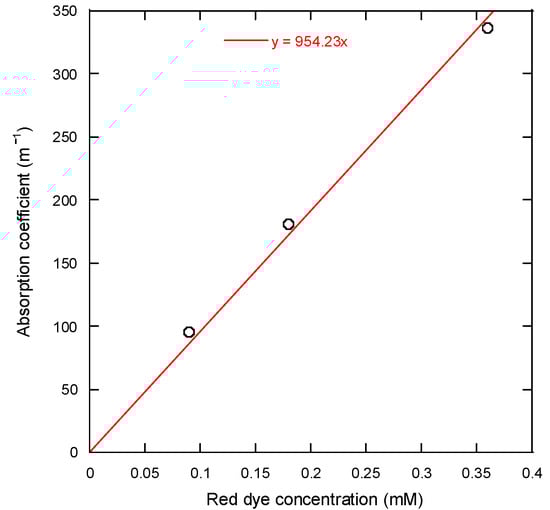 The absorption coefficient with respect to the red dye concentrations in the process (Ag–EG) solution.