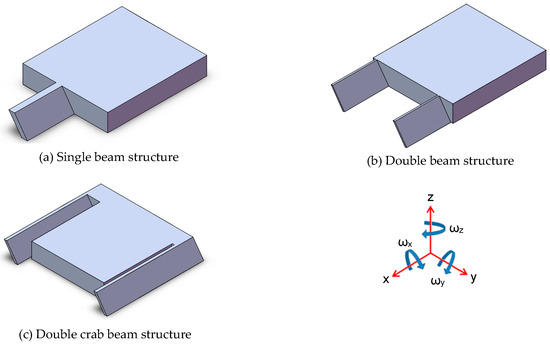 Then, among them, a single beam mass structure was chosen for further investigation because of its geometrical simplicity, lower spring stiffness (considered for the same dimensions of the slanted beams) and internal stress relief of the whole beam mass structure.