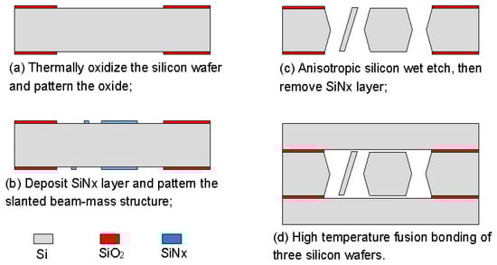 The proposed fabrication process flow of the single slanted-beam accelerometer is briefly outlined in