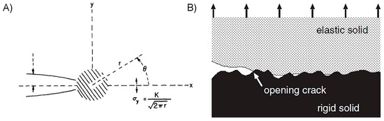 - Maugis, D. Subcritical crack growth, surface energy, fracture toughness, stick-slip and embrittlement. J. Mater. Sci. 1985, 20, 3041–3073. [Google Scholar] [CrossRef]