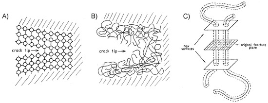 - Williams, M.L. The continuum interpretation for fracture and adhesion. J. Appl. Polym. Sci. 1969, 13, 29–40. [Google Scholar] [CrossRef]