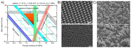 - Hu, S.; Xia, Z. Rational Design and Nanofabrication of Gecko-Inspired Fibrillar Adhesives. Small 2012, 8, 2464–2468. [Google Scholar] [CrossRef] [PubMed]