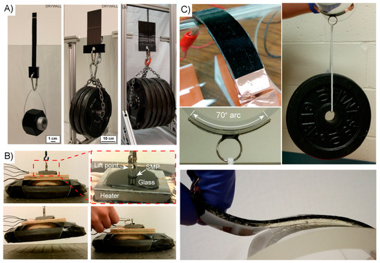 - Luo, X.; Lauber, K.E.; Mather, P.T. A thermally responsive, rigid, and reversible adhesive. Polymer 2010, 51, 1169–1175. [Google Scholar] [CrossRef]
