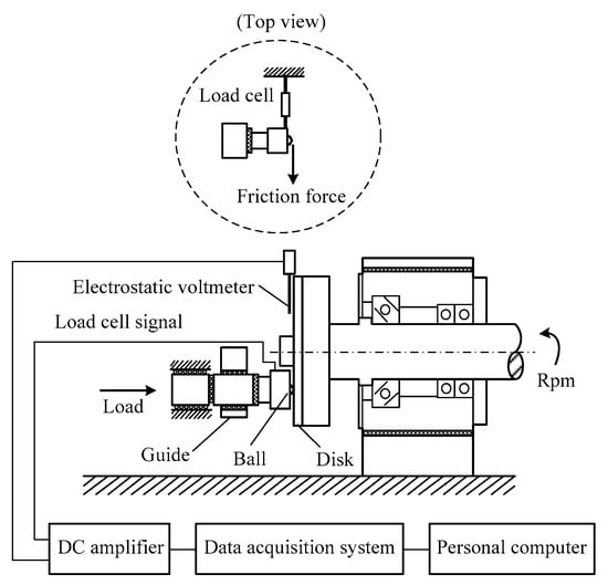 Schematic diagram of the ball/disk friction tester with the measuring system.