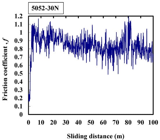Typical response of the friction coefficient of 5052 alloy at 30 N.