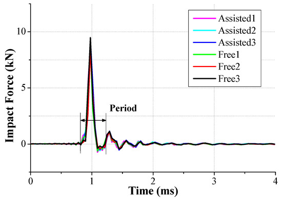 Despite the small allowable error in the peak force and period, as shown in Figure 3 and Table 1, the primary impact and subsequent oscillation for both tests was well matched and the agreement between the free and assisted tests suggests that the test results with the newly-developed test apparatus shows good repeatability.