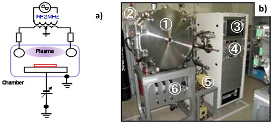 RF-DC plasma process system. (a) Illustration of system. (b) Developed plasma nitriding system in this study.
