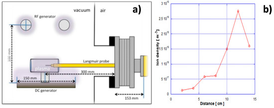 Langmuir probe measurement in the inside of hollow. (a) Experimental setup for measurement. (b) Ion density distribution from the inlet to the outlet.