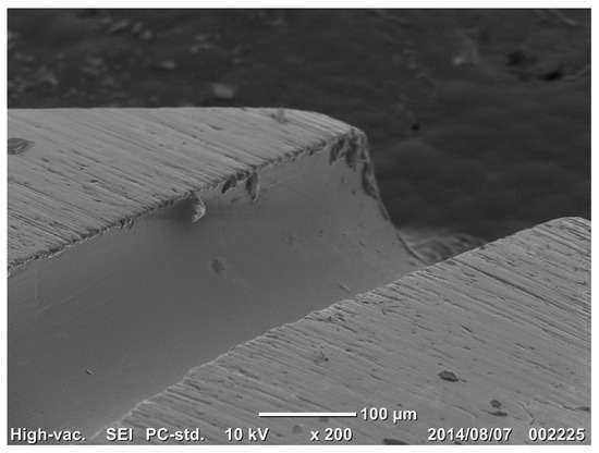 Figure 7 shows the SEM image of a cross section of the mini-nozzle. Based on a noticeable difference in microstructure, the affected layer thickness by this nitriding was estimated to be 125 µm.