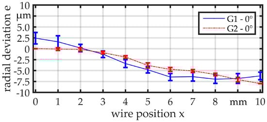 Radial deviation for (a) G1 and (b) G2 measured with linked part 2 (offset between wire ends).