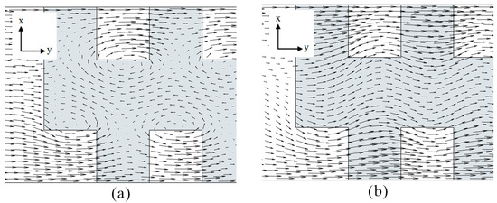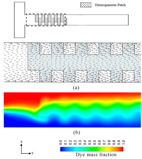 Figure 16a,b show the localized lateral flows induced in the space between the two consecutive heterogeneous patches at