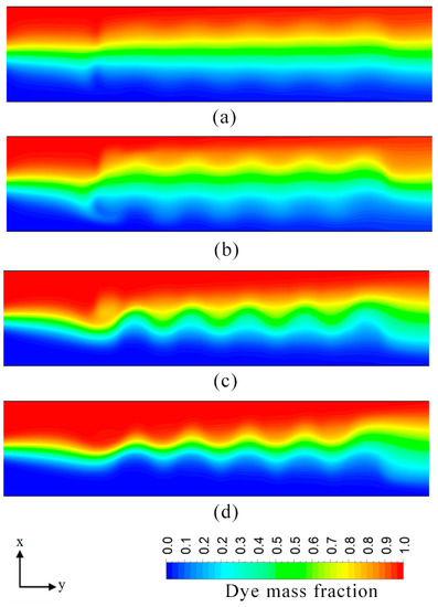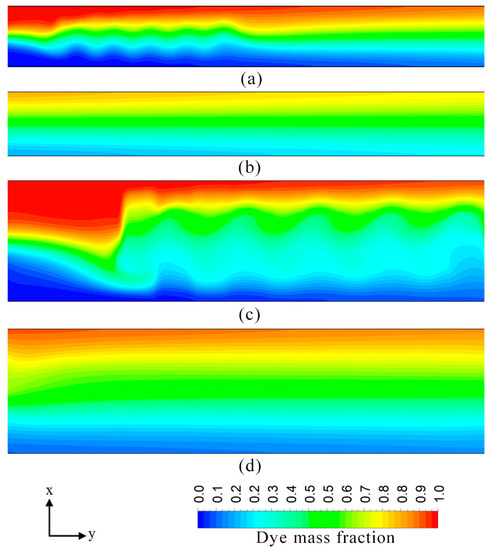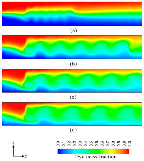 Figure 12 shows dye mass fraction distributions in the microchannel for different