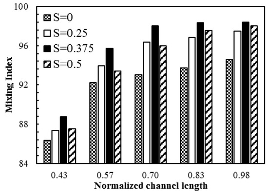Figure 17 shows the developments of mixing index along the channel length for different values of