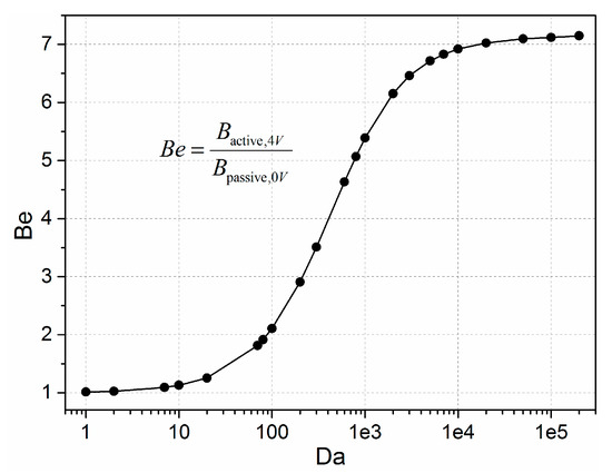 3.2. Dependence of the Binding Efficiency on the Damkohler Number